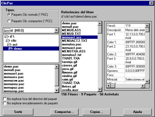 - Marcar a la part superior esquerra de la finestra l'opció Paquets Clic compactes (*.PCC)