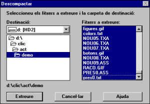 - Fer clic damunt el botó Extreure. El ClicPac s'encarregarà de crear els fitxers com a unitats independents dins de la carpeta de treball.